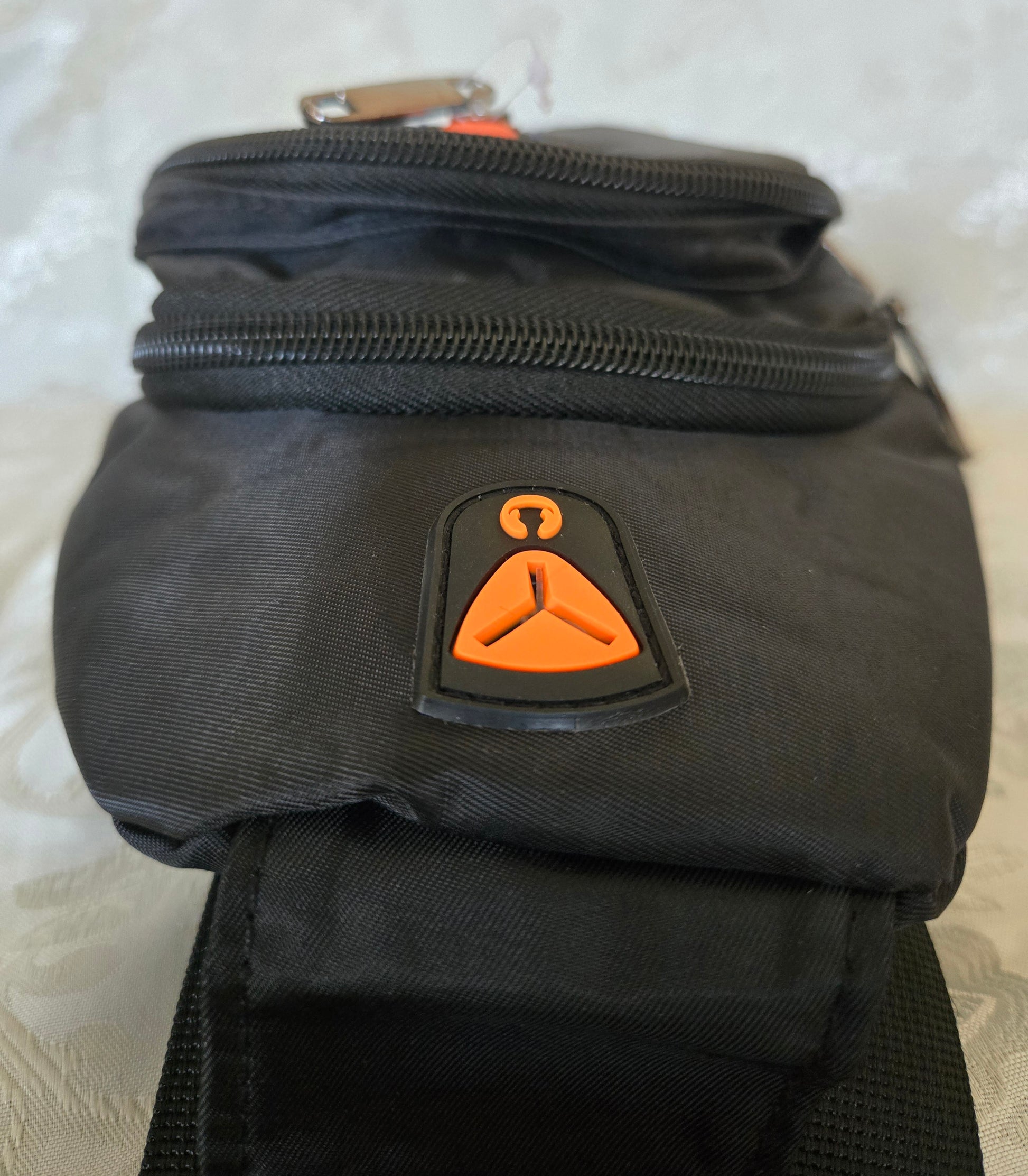 This lightweight, yet durable sling bag has two spacious sections and two more pockets that are functional. It is made of 65% cotton and 35% polyester making it easy to clean. Measurements: 11” tall x 7” wide x 2” deep. Weight: .5 lb