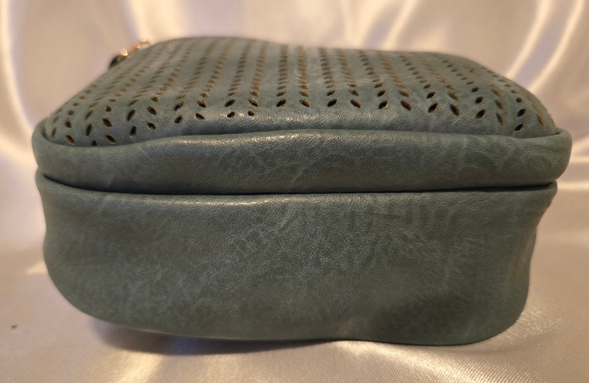 This contemporary sling bag is designed for the minimalist, yet is as practical, convenient and ergonomic as our larger sling bags. It is made of vegan leather and PETA-approved. The gold-toned hardware and thin tassels are stylish embellishments to its appearance. Multiple compartments and pockets allow it to carry all essentials. It measures 9.25” Tall x 6.25” Wide x 3.25” deep and weighs .5 pound.